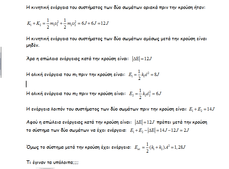 ταλάντωσης μετά. Πριν την κρούση η μηχανική ενέργεια κάθε σώματος συνέπιπτε