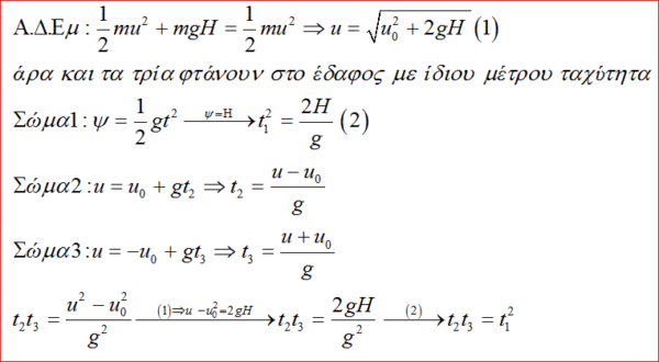 Αν η αντίσταση του αέρα είναι αμελητέα, οι χρόνοι t1, t2, t3 συνδέονται με τη σχέση