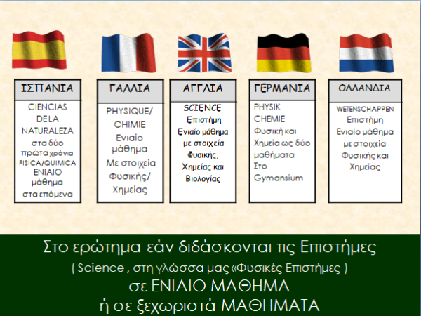 ….. “Οι Ευρωπαϊκές κοινωνίες ομονοούν στο ότι οι έφηβοι πρέπει να διδάσκονται Χημεία και Φυσική. Διαφωνούν στο « τι  πρέπει να διδάσκονται » αλλά και στο «πώς πρέπει να γίνεται η διδασκαλία »……