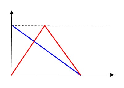 Λέω επίσης ότι μέχρι την στιγμή t1 προηγείται το κόκκινο διότι…… το εμβαδόν είναι μεγαλύτερο.