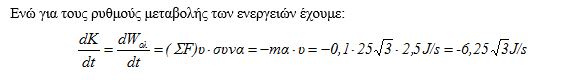 2. Εφόσον θεωρούμε θετική φορά προς τα δεξιά δε μπορούμε την ισχύ των δυνάμεων ( όσων είναι στη διεύθυνση της κίνησης ) να τις εκφράζουμε ως γινόμενο αλγεβρικών τιμών που προκύπτουν από τις χρονικές εξισώσεις, εννοώ ότι δεν είναι απαραίτητο να μπαίνει συνα