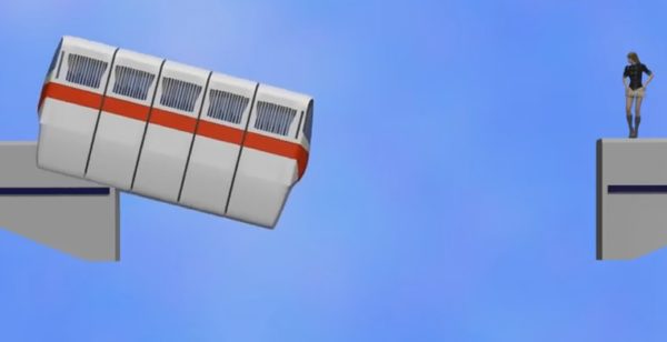 Η δεσποινίς βλέπει το τραίνο να πέφτει στο μεγάλο κενό.