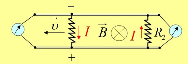 Θα μπορούσε δηλαδή να δημιουργηθεί το ηλεκτρικό πεδίο αν μεταβαλλόταν η μαγνητική ροή με την κίνηση της R2 ή της R1 αντίστοιχα (λόγω μεταβολής εμβαδού).