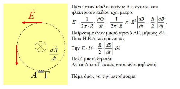 Προφανώς αν ο κυκλικός αγωγός αντικατασταθεί από πηνίο, τα επαγωγικά φαινόμενα ενισχύονται…
