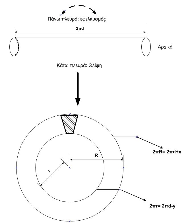 Θα μου πείς ότι το κάτω μέρος είναι παραμορφωμένο και όχι όλο το λάστιχο! Όμως τότε ..δεν θα μπορούσα να κάνω αυτή την άσκηση! Χάριν αυτής οι προσεγγίσεις!