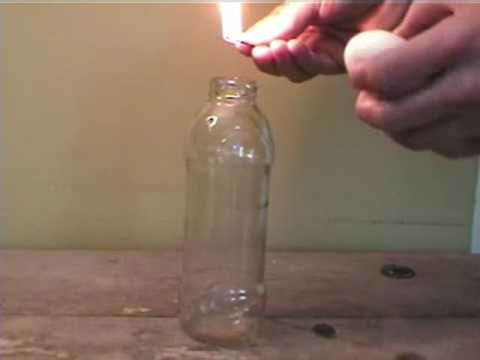Μόλις έριχνα το σπίρτο, τάπωνα το μπουκάλι με το βρασμένο ξεφλουδισμένο αυγό. Καιγόταν ένα μέρος από το οινόπνευμα και, λίγο μετά το σβήσιμο της φλόγας, άρχιζε η κάθοδος του αυγού.