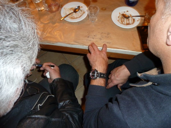 Δυνατό δίδυμο …τίποτα δεν πάει χαμένο ,ούτε χρόνος ούτε χώρος . Το τραπεζομάντηλο …καμβάς φυσικής ζωγραφικής! Αναγνωρίζεται το δίδυμο; Δ.Μ + Κ.Ψ (Το αποθανάτισε και ο Άρης)