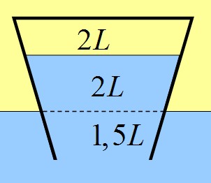 Το δοχείο ζυγίζει 200 g. Πάνω έχει αέρα όγκου 2L. Οι δύο χώροι νερού έχουν όγκους 2L και 1,5L.
