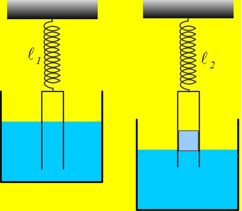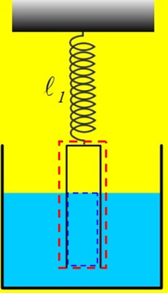 Δίνεται το αριστερό σχήμα όπου ο σωλήνας είναι βυθισμένος σε νερό, χωρίς αυτό να έχει ανέβει στο εσωτερικό του, οπότε το ελατήριο, που συγκρατεί το σωλήνα, έχει μήκος l1.