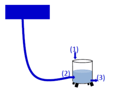 Δεύτερη είσοδος (2) με σωλήνα 1m πάνω από τον πυθμένα της δεξαμενής , διατομής που μπορεί να φέρει με αμελητέες απώλειες ενέργειας νερό από δεξαμενή υδραγωγείου της οποίας η ελεύθερη επιφάνεια βρίσκεται 30m ψηλότερα από την είσοδο (2) της δεξαμενής .