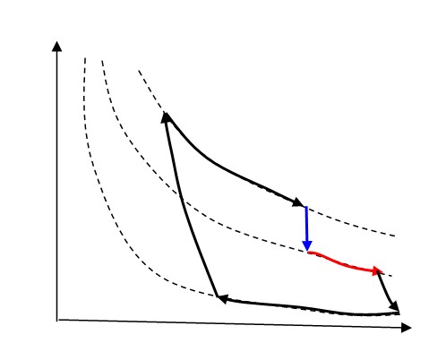 Αυτό δεν σημαίνει ότι δεν εκτελεί αντιστρεπτή μεταβολή, αλλά δεν κάνει αυτό που κάνει η Carnot. Δεν δουλεύει μεταξύ των ίδιων θερμοκρασιών…