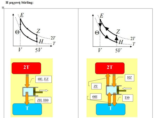 Η Stirling με άλλα λόγια δεν μεταφέρει θερμότητα από Τ1 σε Τ2, αλλά και σε όλες τις ενδιάμεσες, όπως επίσης απορροφά θερμότητα και με ενδιάμεσες θερμοκρασίες, άρα ποιοτικώς υποδεέστερες…