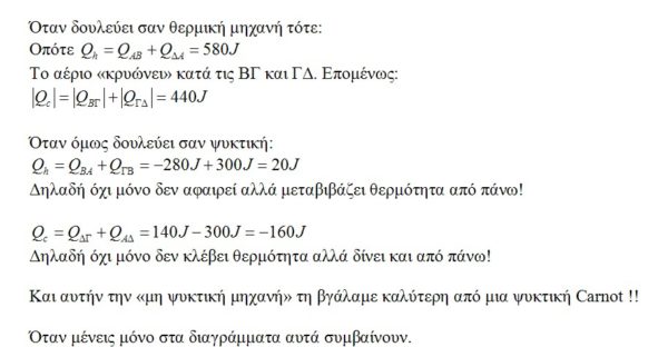 Διότι υποθέτοντας αυτό που γράφεις (ίδια ποσά ως θερμική και ως ψυκτική) προέκυψε η παραβίαση του 2ου Θ.Α. που έγραψα.