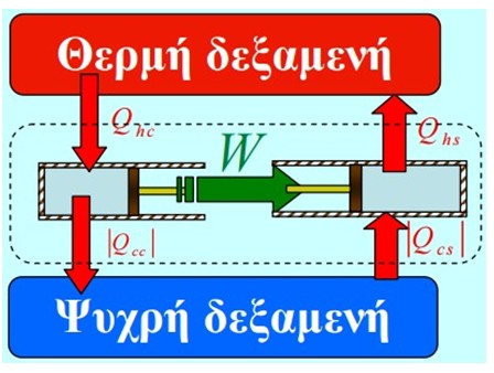 Όταν σου γράφω ότι η μηχανή Stirling κατά την αντίστροφη λειτουργία της απορροφά από τη δεξαμενή χαμηλής θερμοκρασίας Τc, το ίδιο ποσό θερμότητας, όσο αποδίδει και κατά τη λειτουργία της ως θερμική και μου απαντάς……