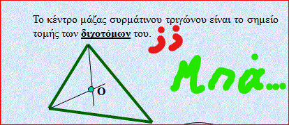 Ξέρεις να βαράς στου ''κουφού'' φίλου την πόρτα … την ανοίγεις και μπαίνεις μέσα. Κι εγώ θύμα αγνώστου θήτη , πάντως όχι αυτού που ψάρεψα γράφοντας στο google …''κέντρο μάζας συρμάτινου τριγώνου'' ή''κέντρο μάζας τριγωνικής πλάκας'' (Τα πρόσθετα ;; & Μπα.. δικά μου)