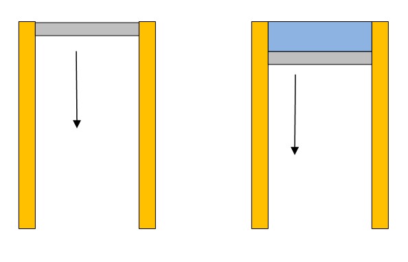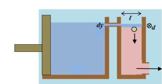 Επομένως, αν η διατομή του οριζόντιου σωλήνα είναι dy•d ενώ του δοχείου ℓ•d. Για να έχουμε ίδια παροχή, θα πρέπει το νερό να εξέρχεται από τον οριζόντιο σωλήνα με τεράστια ταχύτητα υ, κάτι που είναι αδύνατο (Torricelli στο αριστερό δοχείο, υ σχεδόν μηδενική).