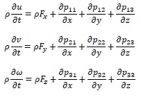 Οι δε εξισώσεις πέντε: οι τρεις παραπάνω, συν την εξίσωση της συνέχειας, συν την εξίσωση της ενέργειας. Χρειαζόμαστε λοιπόν δύο επιπλέον εξισώσεις μεταξύ των καταστατικών μεγεθών ε, p, ρ και Τ. Για παράδειγμα στα ιδανικά αέρια τις p = (ρ/Μ)RT και ε = nCvT.