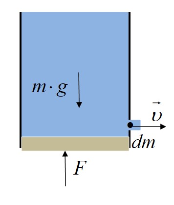 Η μεταβολή της ορμής του στον άξονα y είναι dm.V , όπου V η αμελητέα ταχύτητα του κέντρου μάζας του νερού.