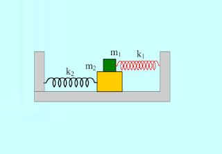Στο σχήμα βλέπουμε τα σώματα με μάζες m1 και m2, με το σώμα μάζας m1 πάνω στο σώμα μάζας m2 . Το επίπεδο είναι λείο και το ελατήριο που είναι δεμένο το m1 έχει σταθερά k1 ενώ το ελατήριο που είναι δεμένο το m2 έχει σταθερά k2 . Μεταξύ των δύο σωμάτων υπάρχει τριβή με συντελεστή στατικής τριβής μ . Να βρεθεί το μέγιστο πλάτος ταλάντωσης για το οποίο δεν παρατηρείται σχετική κίνηση μεταξύ των σωμάτων.