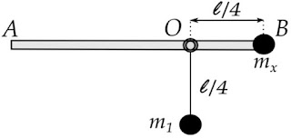 Η ομογενής ράβδος του σχήματος μπορεί να περιστρέφεται γύρω από σταθερό οριζόντιο άξονα που είναι κάθετος σε αυτήν και διέρχεται από το σημείο Ο χωρίς τριβές. Στο άκρο Β της ράβδου που βρίσκεται σε απόσταση l/4 από το σημείο Ο υπάρχει σημειακή μάζα mx κολλημένη στη ράβδο και το σύστημα ισορροπεί με τη ράβδο σε οριζόντια θέση.