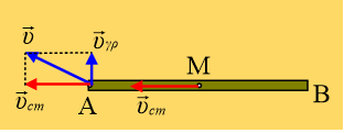 Πριν την αποδέσμευση, μπορούμε να 'δούμε' την κίνηση της ράβδου ΑΒ ως στροφική περί το Ο. Μετά την αποδέσμευση, η ΑΒ ως ελεύθερο στερεό, στρέφεται περί το κέντρο μάζας της Κ. Θα μπορούσαμε τώρα να δούμε το σημείο Α να έχει δύο ταχύτητες: μια γραμμική υγρ=ω(ΑΚ) κάθετη στην ΑΒ και μια οριζόντια ταχύτητα, αυτή του Κ.
