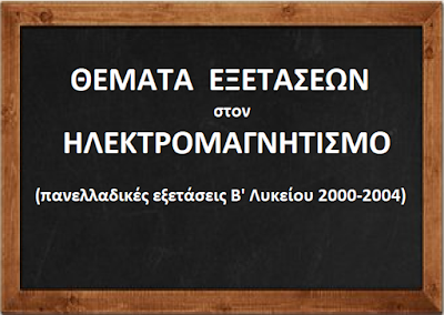 Με αφορμή το γεγονός ότι ο ΗΛΕΚΤΡΟΜΑΓΝΗΤΙΣΜΟΣ αποτελεί πλέον τμήμα της διδακτέας και εξεταστέας ύλης της Φυσικής Γ’ Λυκείου στην Ομάδα Μαθημάτων Θετικών Σπουδών, δημοσιεύω τα θέματα που είχαν δοθεί την περίοδο 2000 – 2004 στις πανελλαδικές εξετάσεις Φυσικής της Β’ Λυκείου (Γενικής Παιδείας και Θετικής Κατεύθυνσης). Εννοείται ότι στην ανάρτηση έχω καταχωρήσει εκείνα τα θέματα ηλεκτρομαγνητισμού που περιλαμβάνονται στην διδακτέα ύλη.