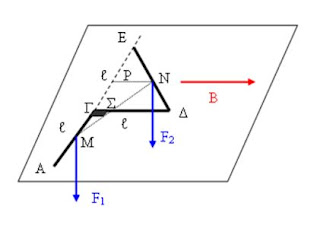 Η δυνάμεις F1 και F2 ασκούνται στα Μ και Ν μέσα των ΑΓ και ΔΕ αντίστοιχα.