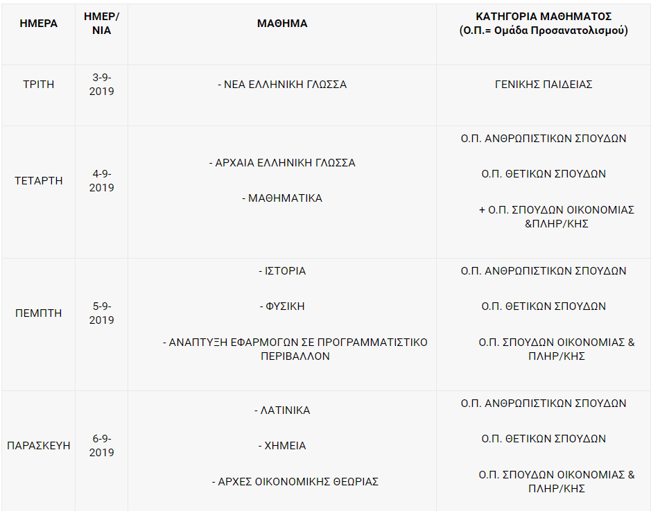 Πρόγραμμα και Εξεταστικά κέντρα για τις Επαναληπτικές Πανελλαδικές εξετάσεις ΓΕΛ και ΕΠΑΛ έτους 2019.