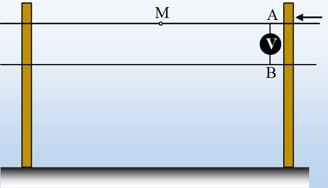 - Να υπολογιστούν τα δυναμικά στα σημεία Α και Μ, όπου Μ το μέσον του σύρματος, μεταξύ των δύο στύλων.