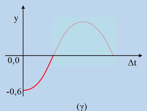 Στην 2η ταλάντωση, το σώμα ξεκινά από την κάτω αρνητική θέση πλάτους y=-0,6m οπότε έχουμε αρχική φάση 3π/2 και θέλουμε να σχεδιάσουμε την απομάκρυνση, μέχρι να φτάσει στη θέση ισορροπίας, δηλαδή για χρονικό διάστημα ¼ της νέας περιόδου (πάλι πεδίο ορισμού…) και η ζητούμενη γραφική παράσταση έχει τη μορφή του σχήματος (γ), που νομίζω ότι μπορεί να σκεφτεί ο μέσος μαθητής!