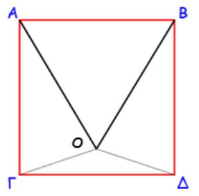 Στο εσωτερικό του τετραγώνου κατασκευάζουμε δύο γωνίες ΟΓΔ και ΟΔΓ