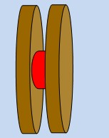 Η περιφέρεια κάθε δίσκου είναι 40 cm ενώ η περιφέρεια του κόκκινου κυλίνδρου 10cm.