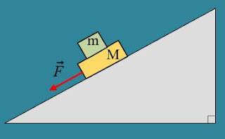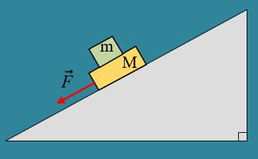 Συσσωμάτωμα Μ και m ολισθαίνει επί κεκλιμένου επιπέδου γωνίας φ με το οριζόντιο επίπεδο, και με συντελεστή τριβής ολίσθησης μο με το επίπεδο, με την επίδραση δύναμης F εφαρμοζόμενης στο Μ, όπως στο σχήμα….