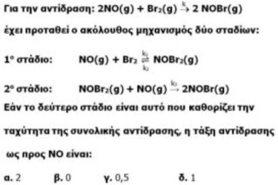 Για τη λύση του προβλήματος χρησιμοποιείτε την Kc. Ωστόσο από τα δεδομένα του προβλήματος προκύπτει ότι η πρώτη αντίδραση δεν πρόκειται ποτέ να φθάσει σε κάτασταση ισορροπίας αφού καταναλώνεται ένα συστατικό της σε επόμενη αντίδραση. Άρα, σε καμία χρονική στιγμή δεν μπορεί η συγκέντρωση του NOBr2 να αντικατασταθεί από τη σχέση της χημικής ισορροπίας, γιατί το σύστημα δεν φθάνει σε αυτή. Παρουσιάζετε μια μαθηματική επεξεργασία που όμως “χημικά” δεν ευσταθεί.