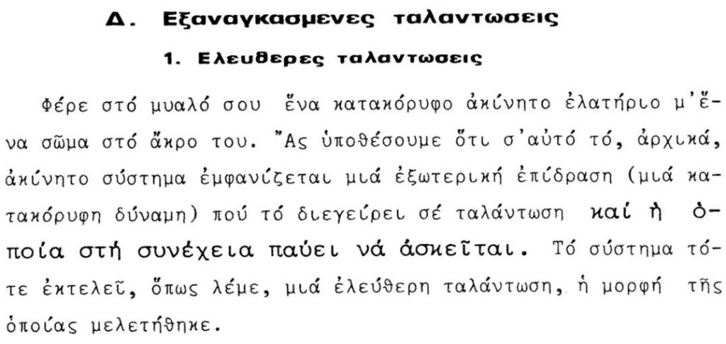 Δηλαδή, όλα τα προηγούμενα, τα οποία μελετήσαμε μέχρι στιγμής (σαν αατ…) αφορούν τις ελεύθερες ταλαντώσεις.