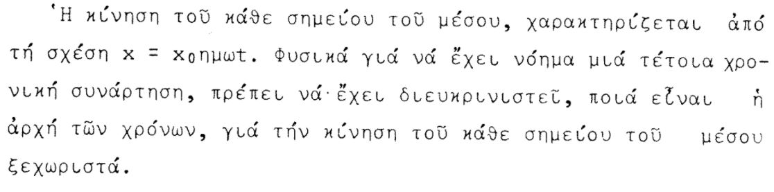 Βλέπεις Κωνσταντίνε να χρησιμοποιεί μιλώντας για κύματα τον ορισμό αατ για την κίνηση; Δίνει την εξίσωση της απομάκρυνσης αποφεύγοντας την κίνηση να την ονομάσει αατ! Βρες μου σε παρακαλώ ένα σημείο στο βιβλίο του Ανδρέα, στα κύματα, που να μιλάει για αατ σημείου.
