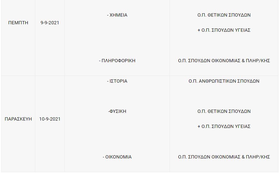 Ως ώρα έναρξης εξέτασης ορίζεται για όλα τα μαθήματα η 16.00 μ.μ. Η προσέλευση των υποψηφίων στις αίθουσες εξέτασης γίνεται 30 λεπτά τουλάχιστον πριν από την έναρξη των εξετάσεων.