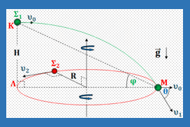Μικρό σφαιρίδιο Σ2 με μάζα m2 εκτελεί ομαλή κυκλική κίνηση ακτίνας R σε οριζόντιο επίπεδο με ταχύτητα μέτρου υ2, όπως φαίνεται στο σχήμα. Ένα άλλο σφαιρίδιο Σ1 με μάζα m1 εκτελεί οριζόντια βολή με αρχική ταχύτητα μέτρου υ0 από σημείο Κ που βρίσκεται σε ύψος Η πάνω από το επίπεδο της κυκλικής τροχιάς του σφαιριδίου Σ2 στην ίδια κατακόρυφο με το σημείο Λ της διαμέτρου ΛΜ. Δίνεται ότι υ2 = πυ0. Όταν το σφαιρίδιο Σ1 φτάσει τη στιγμή t1 στο επίπεδο της κυκλικής τροχιάς του σφαιριδίου Σ2: