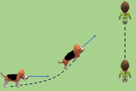 Αρχικά απέχουν 40 m και το παιδί κινείται κάθετα προς την ευθεία που το ενώνει με τον σκύλο με σταθερή ταχύτητα 2 m/s.