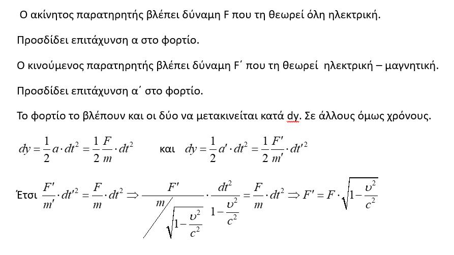 Τελικά η δύναμη που μετρά ο κινούμενος παρατηρητής είναι ίση με Fγ ή F/γ;
