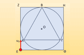 Στο σχήμα βλέπετε ένα ισόπλευρο τρίγωνο εγγεγραμμένο σε κύκλο ακτίνας r=1m, ο οποίος είναι εγγεγραμμένος σε τετράγωνο. Η πλευρά ΑΓ του τριγώνου είναι παράλληλη στην ΕΘ του τετραγώνου. Στο χώρο επικρατεί ομογενές μαγνητικό πεδίο κάθετο στο επίπεδο των τριών σχημάτων, περιορισμένο στο χώρο που ορίζει το τετράγωνο με ένταση Β=5∙10-2Τ .