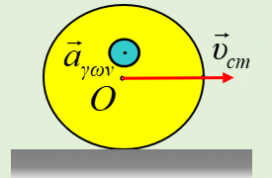 iv) Αν ο δίσκος κυλίεται (χωρίς να ολισθαίνει) έχοντας γωνιακή επιτάχυνση, όπως στο σχήμα ενώ η ταχύτητα του κέντρου Ο είναι προς τα δεξιά, προς τα δεξιά είναι και η επιτάχυνση του Ο.